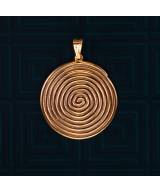 El dije grande Devenir del tiempo, Urabÿ, es un imponente colgante tallado en filigrana de baÏo en oro de 24k, que mediante su forma de espiral, marca los diferentes sucesos ocurridos en la vida, situaciones relevantes o cambios delimitados por un inicio y un final o la acci½n y la construcci½n, una armona con la vida caracterstica de las culturas precolombinas y sus creencias.