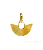 El dije mediano nariguera es una pieza representativa de orfebrera hispÿnica y precolombina, tallada y baÏada en oro de 24K, caracteriza uno de los adornos mÿs comunes y con mayor variedad en sus formas dentro de las antiguas tribus precolombinas, su variedad de diseÏos, producan el efecto de levantar la nariz para semejar una aleta nasal de murci?lago, otras eran convertidas en un hocico dorado, y varias las dotaban de bigotes u otros rasgos distintos de algn animal.