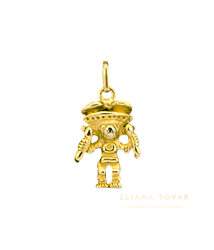 El dije pequeÏo Divinidad guerrera Calima, es la replica baÏada en oro de 24K de una importante pieza perteneciente a la cultura precolombina de los Calimas, cuya sociedad se dividi½ en cacicazgos, o tribus gobernadas por caciques, en la que cabe resaltar a la mujer como figura central, la cuÿl desempeÏa un papel importante dentro de las sociedades al ser principal interventora entre la ganadera y actividades agrcolas.