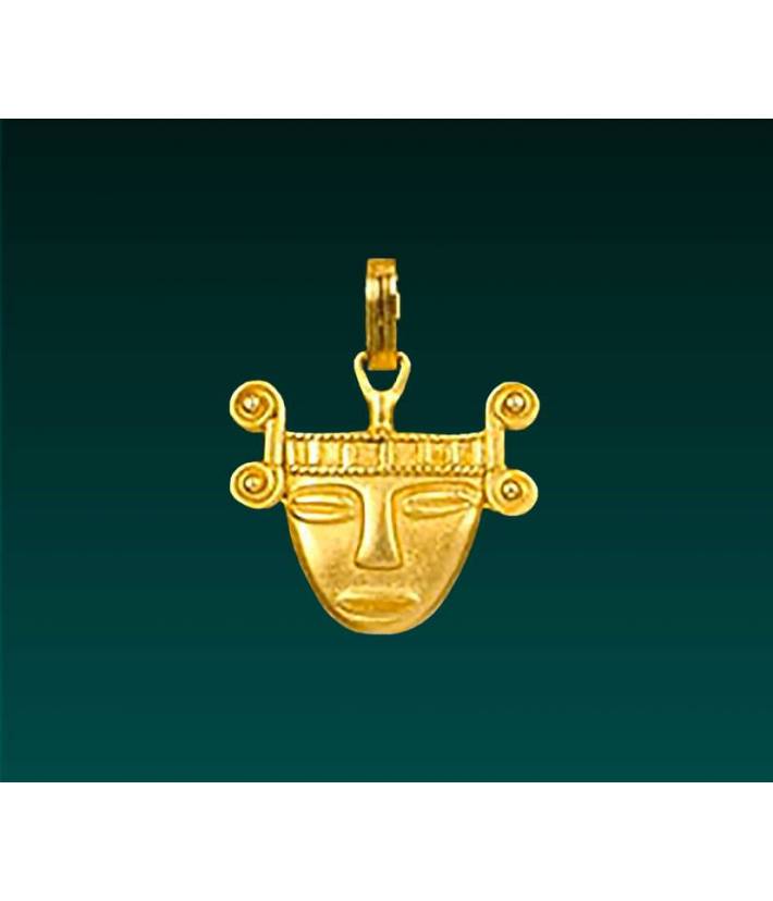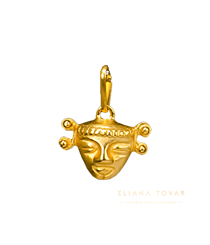 El dije pequeÏo mÿscara Quimbaya, es una de las piezas baÏada en oro de 24K, con la que se destaca el manejo de la orfebrera precolombina, que se caracteriza por esculpir en metales preciosos como el oro, figuras ic½nicas de sus lderes y divinidades . La poblaci½n Quimbaya destac½ en la agricultura y la minera de oro sal y la elaboraci½n de cerÿmicas.