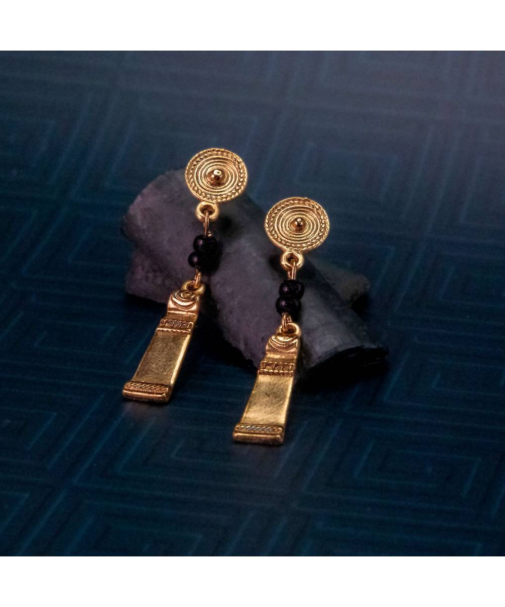 Los pendientes Cacera, son un juego de pendientes baÏados en oro de 24K combinados con coralina, piedra simb½lica, entre las culturas precolombinas, de motivaci½n, que representa uno de los instrumentos de caza caractersticos, evocado a trav?s del tallado en orfebrera con baÏo en oro de 24K, identificando en el a los grandes cazadores de las tribus.